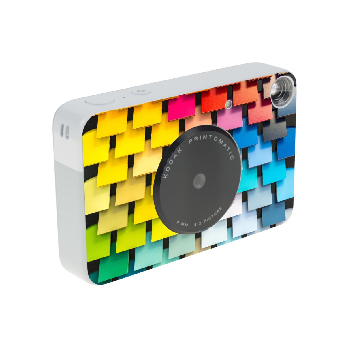 Appareil photo instantané Kodak Printomatic. Photos imprimées en couleurs à la volée sur vignette adhésive. Technologie d'impression thermique Zink (sans encre). Flash automatique. Sauvegarde des photos possible sur carte mémoire micro SD jusqu'à 32 GO (non incluse). Autonomie de batterie jusqu'à 40 photos. Kit de démarrage inclus (5 feuilles papier photo).