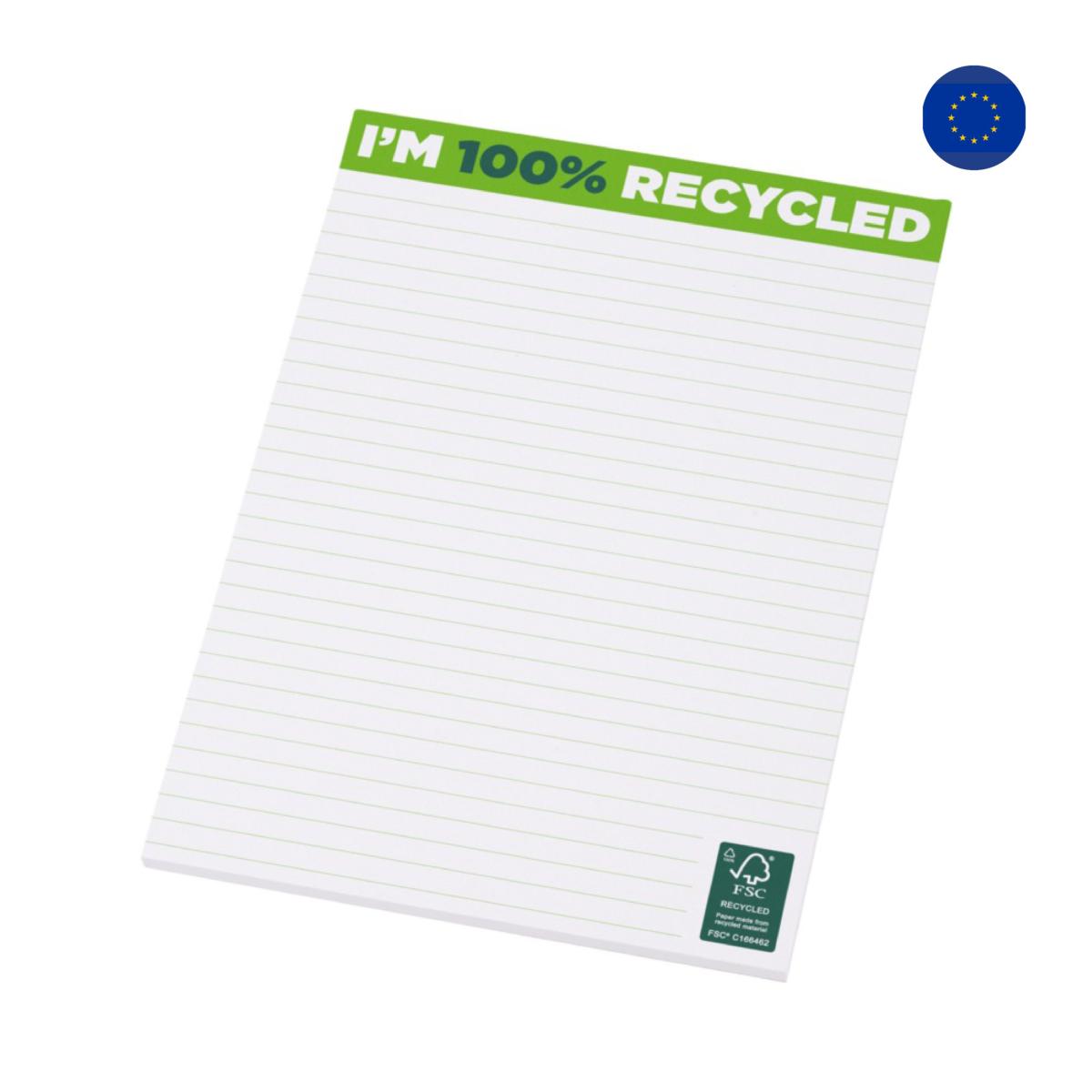 Marquage possible sur chaque feuille. Trois tailles disponibles : 25 feuilles (TVA21281011P1), 50 feuilles (TVA21281011P2) et 100 feuilles (TVA21281011P4). Papier recyclé, 80 g/m2, Carton recyclé, 280 g/m2.