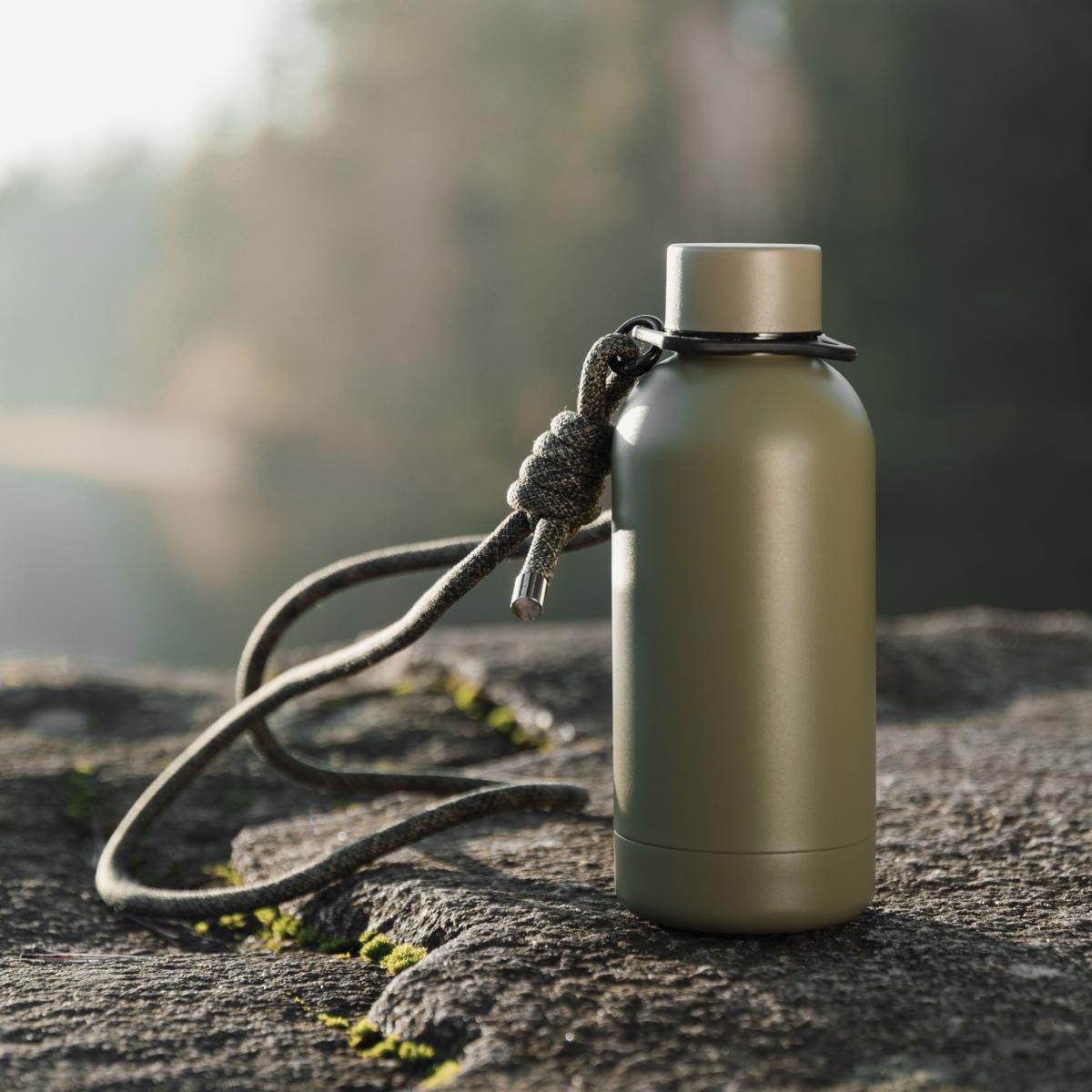 Bouteille isotherme en acier inoxydable. Double paroi conçue pour garder les boissons fraîches jusqu'à 12 heures et chaudes jusqu'à 6 heures. Bandoulière ajustable et détachable pratique pour faciliter le transport. Certifiée par RCS (Recycled Claim Standard) garantissant que l'ensemble de la chaîne d'approvisionnement en matériaux recyclés est certifiée. Ce produit contient 72 % d'acier inoxydable recyclé certifié RCS.