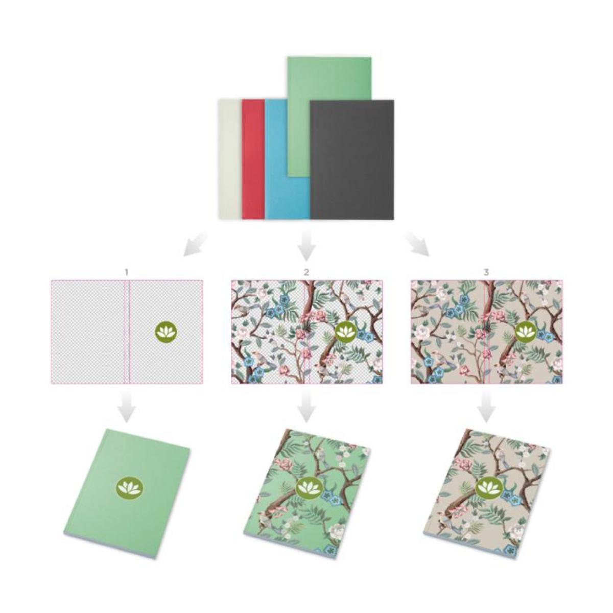 Matière(s) : papier recyclé 80 g/m2 et couverture en carton 285 g/m2