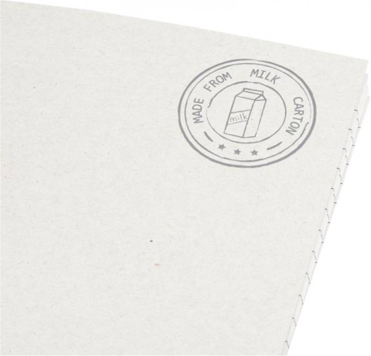 Carnet de notes au format A5 avec 30 feuilles lignées de 80 g/m², fabriquées à partir de briques de lait recyclées (jusqu'à 70 %). Les briques de lait usagées sont collectées, triées, traitées et transformées en papier, transformant ainsi les déchets en quelque chose d'utile. Carton recyclé.