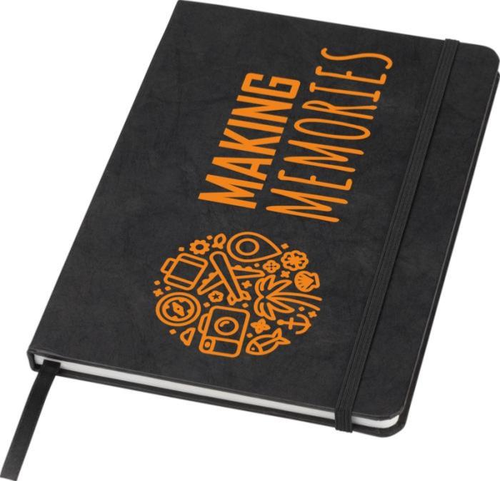 Carnet de taille A5 résistant aux déchirures avec pages intérieures fabriquées en pierre. Le papier de pierre n'utilise aucun arbre et le processus de production consomme moins d’énergie que celui du papier recyclé ou de nouvelle pâte à papier.