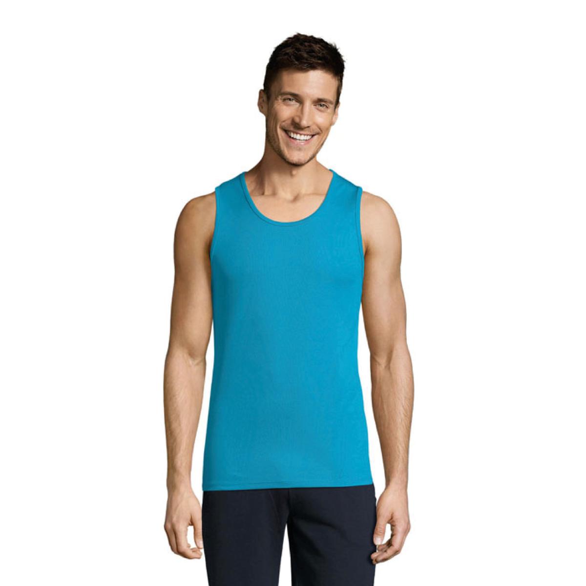 Débardeur de sport en polyester, pour homme. Effet respirant. Coupé cousu, colletage au col et aux emmanchures.