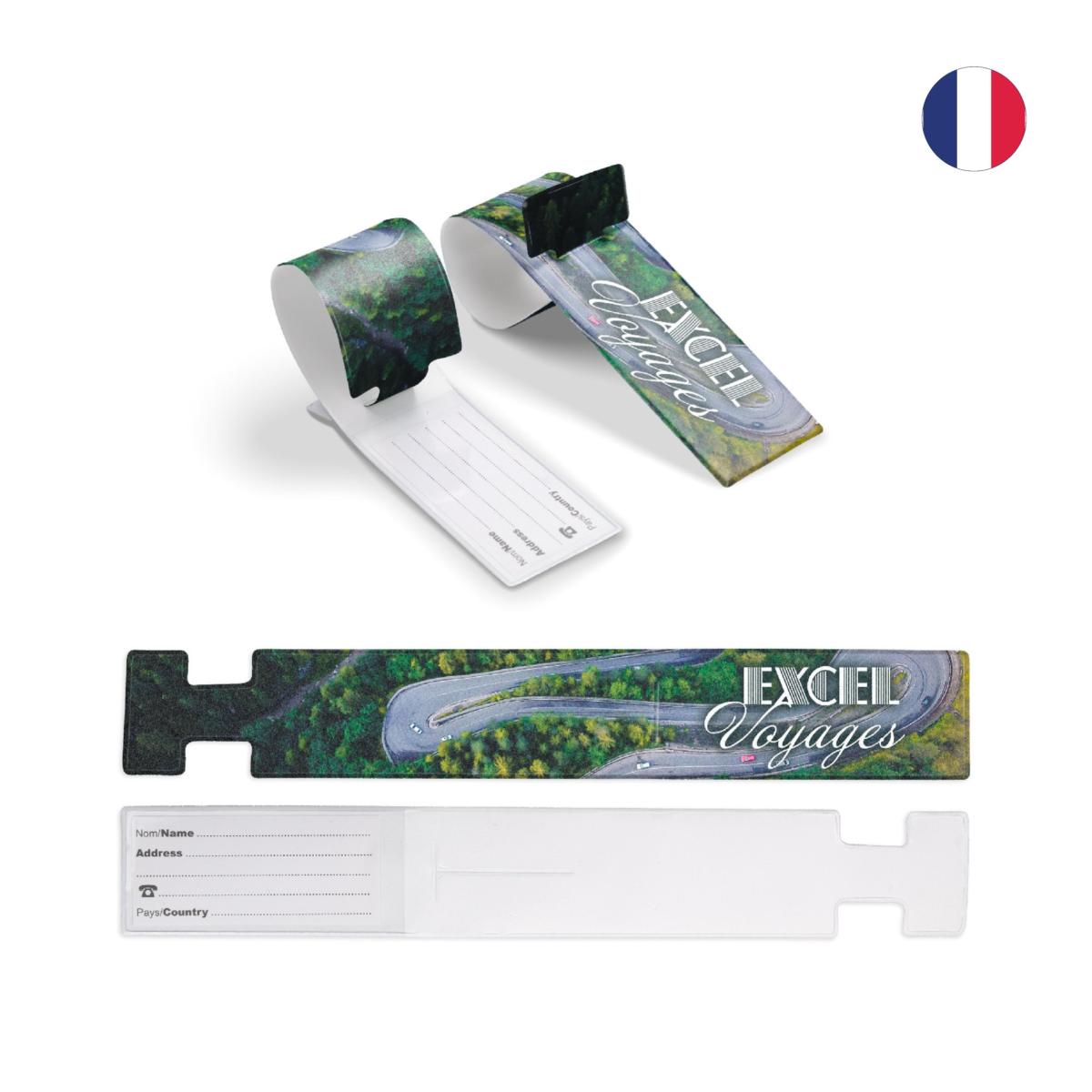 Porte-étiquette rectangulaire. Disponible en plusieurs coloris selon les stocks, sur demande. Effet bicolore élégant (recto/verso). Dimensions : 26 x 4 cm. Cartonnette d'identification incluse. 100% made in France. Sur devis.