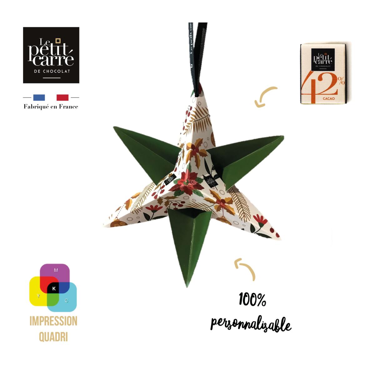 Étoile de Noël personnalisée - Le Petit Carré de Chocolat. Contient un carré de chocolat Gianduja 5g.