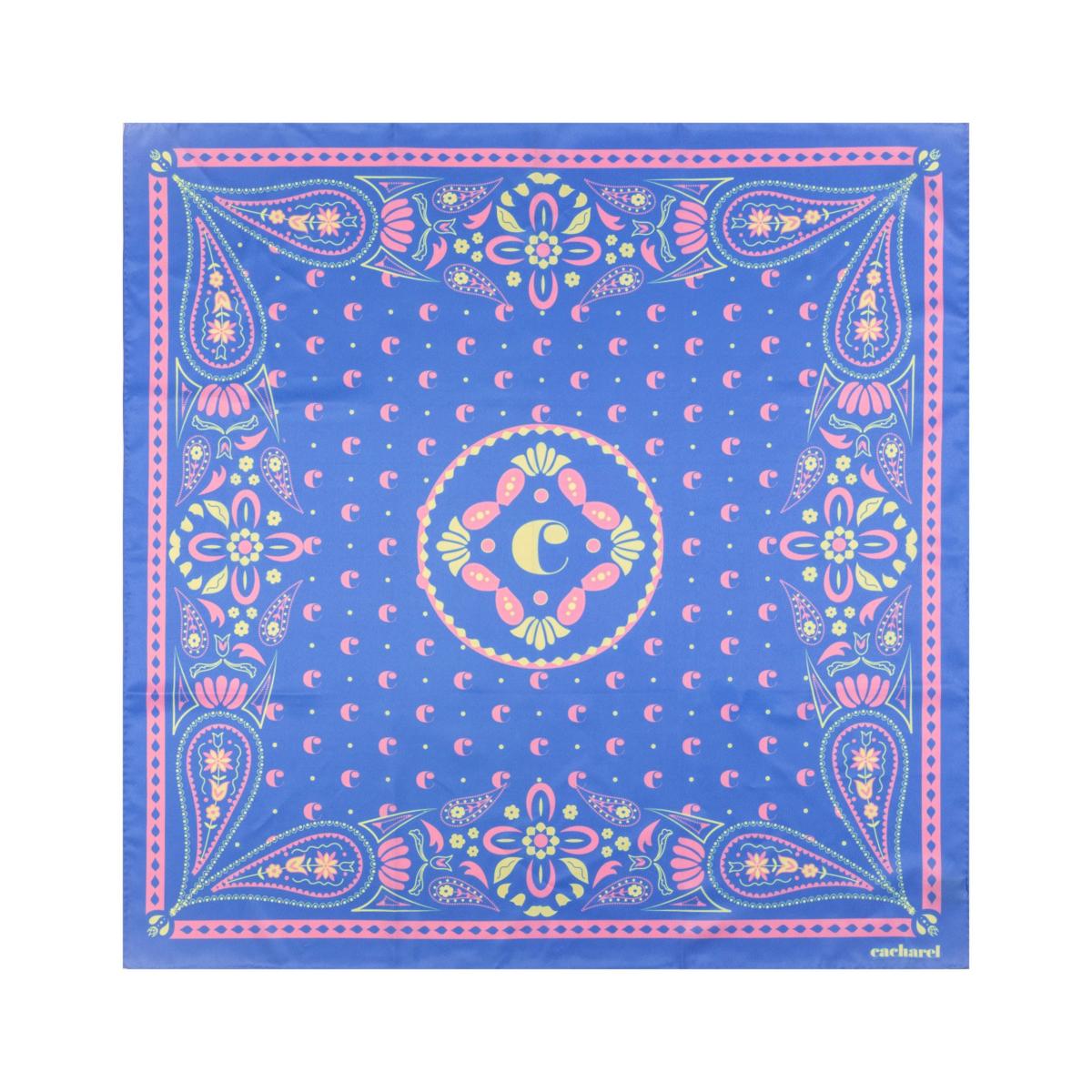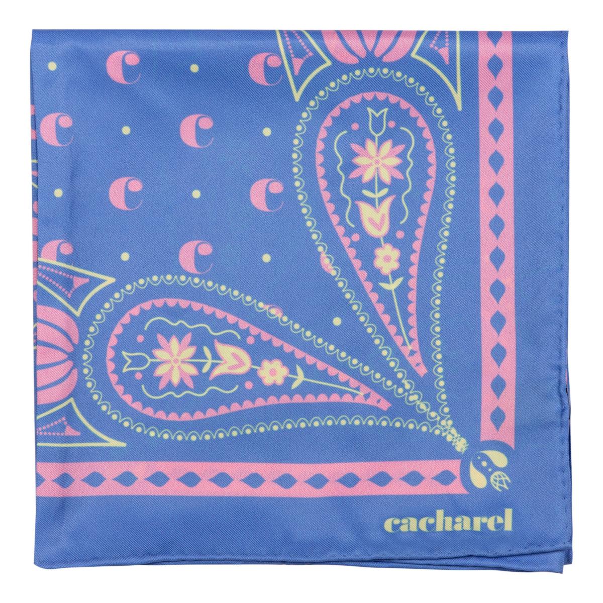 Foulard avec imprimé, de la marque Cacharel. Imprimé d'inspiration paisley. Imprimés graphiques. Couleurs pop. Soie végétalienne. Dimensions : 65 x 65 cm.