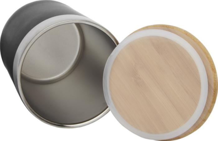 Gobelet isotherme à double paroi avec couche de cuivre, au design moderne, et avec un couvercle en bambou biologique. L'acier inoxydable 18/8 avec isolation conserve les boissons chaudes ou froides pendant plusieurs heures.
