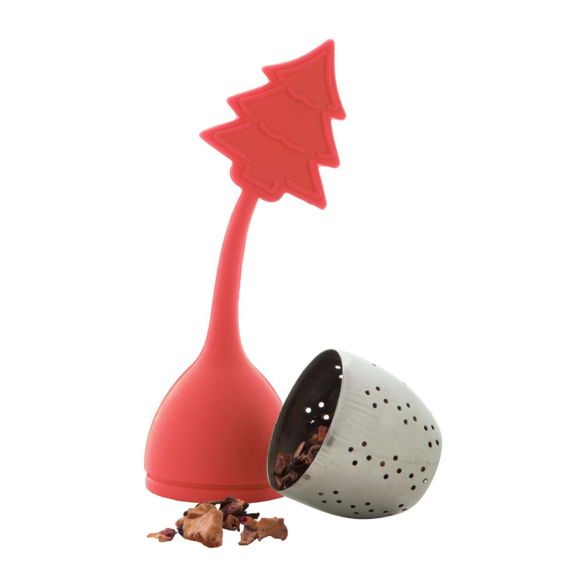 Infuseur à thé en silicone et acier inoxydable en forme d'arbre de Noël.