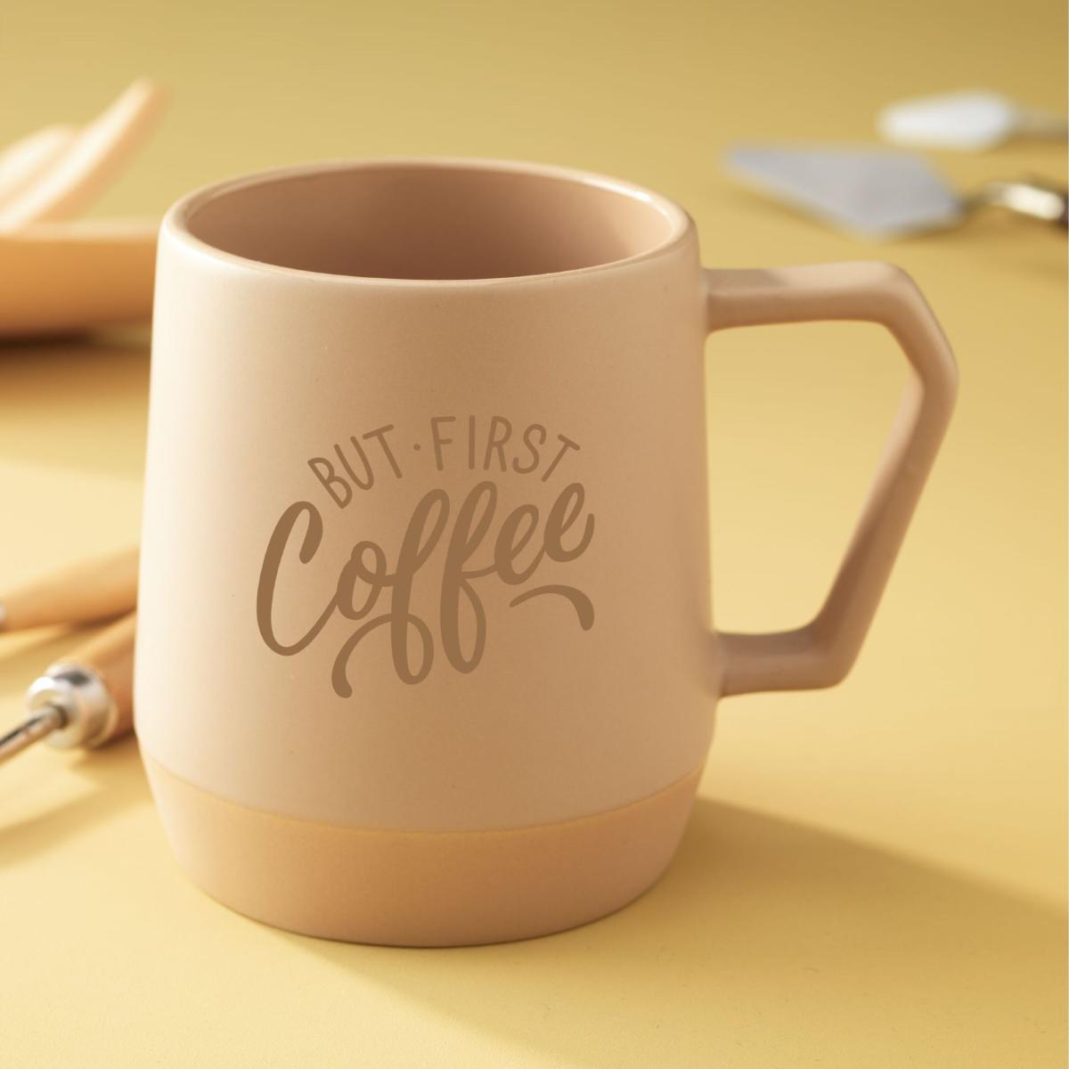 Mug avec anse, fabriqué en céramique de haute qualité et 5% de céramique recyclée. L'intérieur et l'extérieur sont recouverts d'une finition brillante. Les variations naturelles de l'argile confèrent à ce mug un caractère unique. Passe au lave-vaisselle.