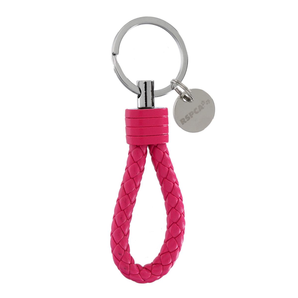 Porte-clés boucle en PU et breloque en zamac (finition nickel brillant). Dimensions breloque : 24 x 2 mm.