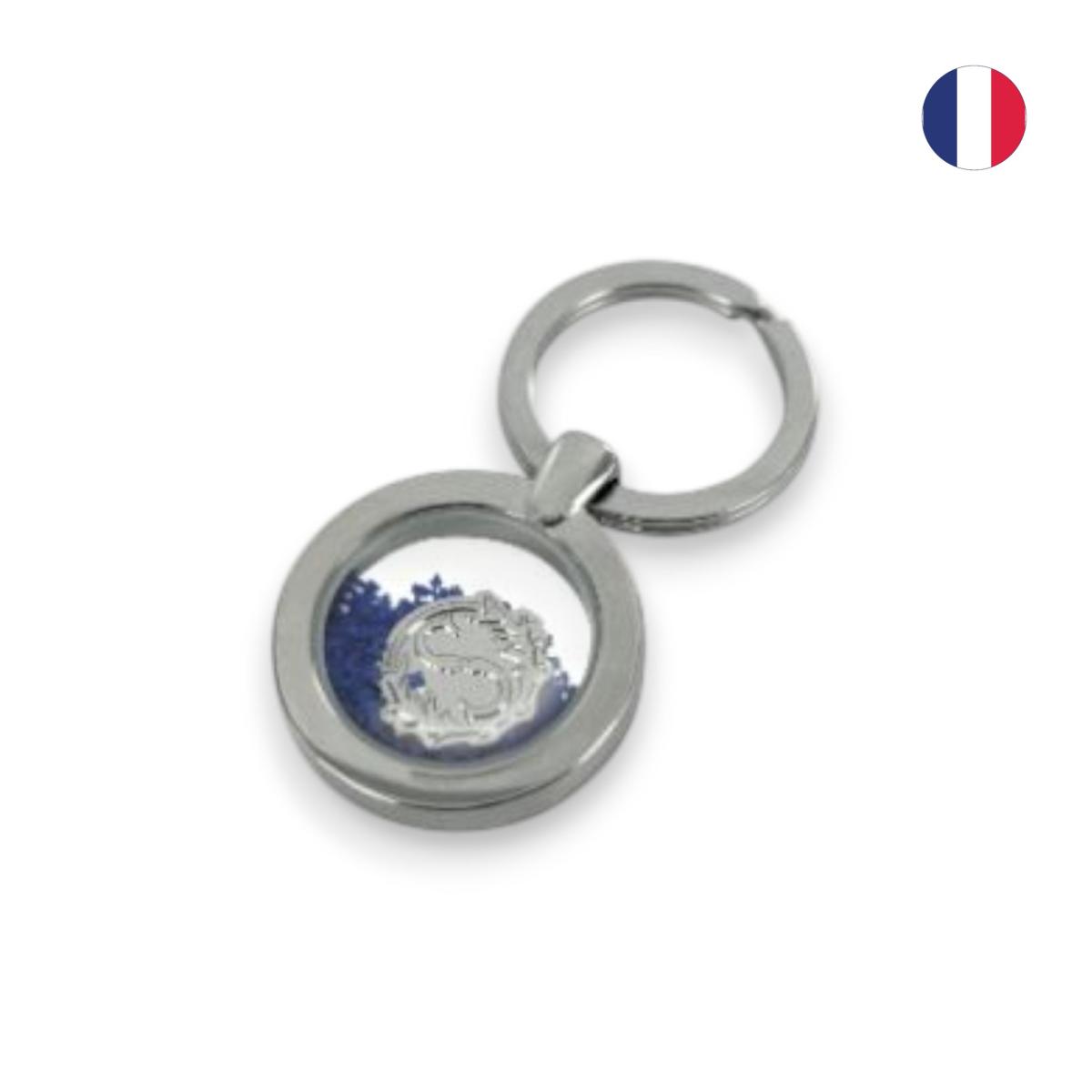 Porte-clés hublot avec logo dansant. Serti à la main. Fabriqué en France.