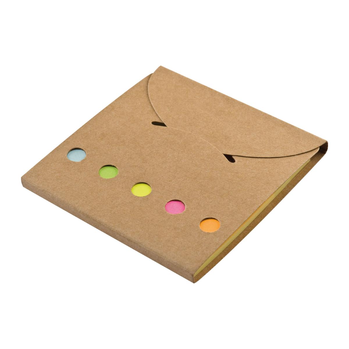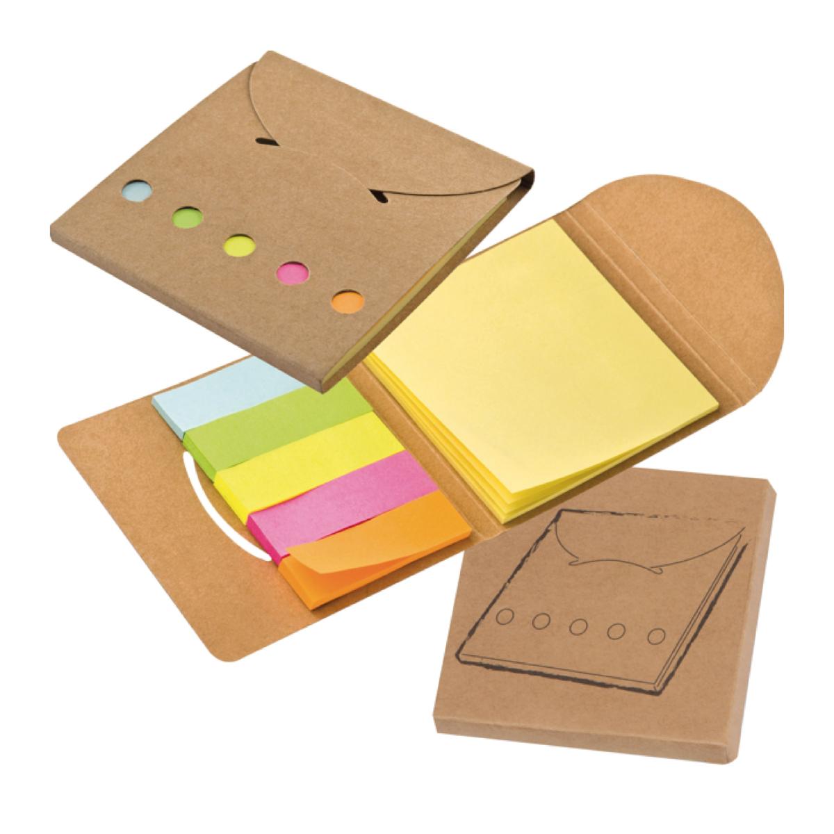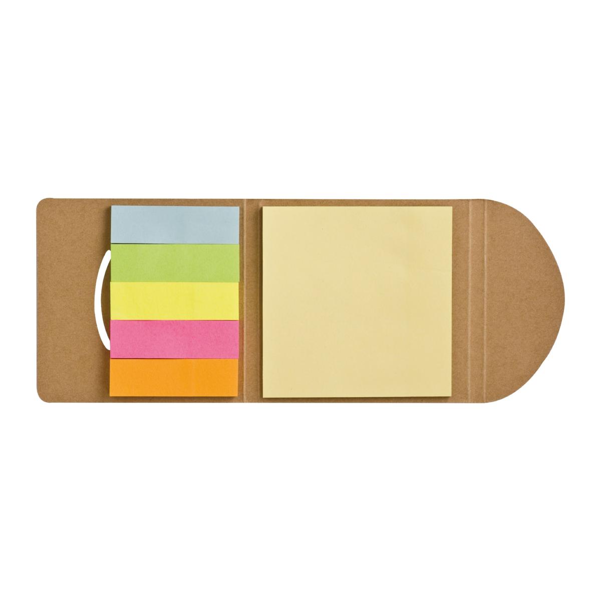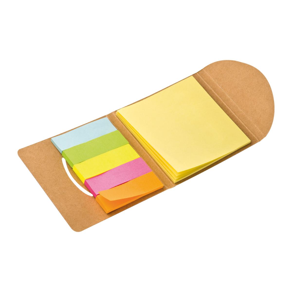 Porte-index et mémos adhésifs au look naturel. Composé d'index de différentes couleurs (25 par couleur) et de 25feuilles mémos jaunes.