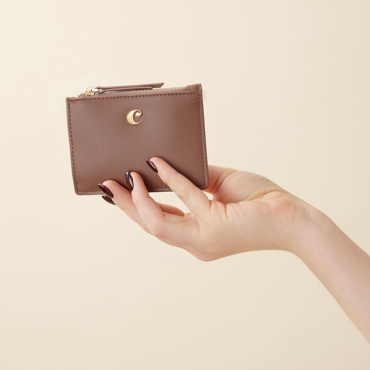 Porte-monnaie de la marque Cacharel. Polyvalence et praticité. Cuir végétal lisse. Plaque "C" signature de Cacharel. Palette de couleurs sophistiquées. Design compact et fonctionnel.