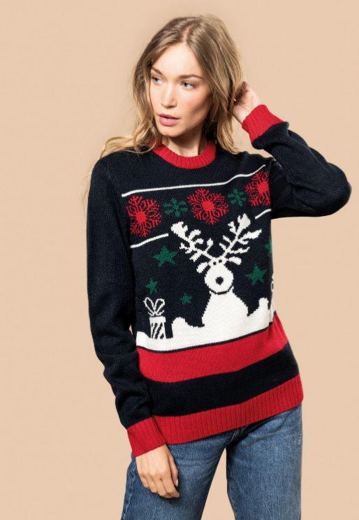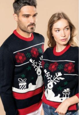 Collection pulls de Noël par Kariban. Classique motifs rennes de Noël. No label : 100% personnalisable à votre marque. Taille S à 3XL