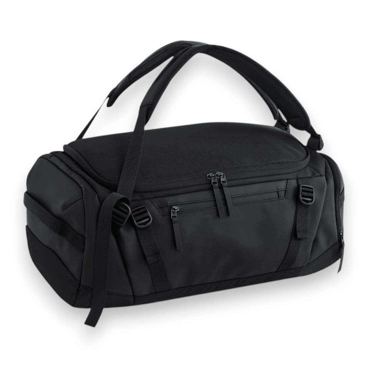 Sac à dos de voyage, avec compartiment pour ordinateur, en polyester recyclé certifié GRS (certifié par Control Union CU811033). Bretelles hybrides réglables pour une utilisation en sac à dos et en sac fourre-tout. Housse intérieure rembourrée pour ordinateur portable, compatible jusqu'à 15". Poche supérieure zippée avec organiseur interne. Compartiment principal zippé. Poche latérale zippée. Poche intérieure zippée en filet. Panneau arrière rembourré. Ouverture zippée à double sens pour un accès facile. Bretelles rembourrées réglables en filet aéré. Poignées rembourrées. Doubles sangles de compression. Sangle de poitrine réglable. Étiquette détachable pour faciliter le changement de marque. Surface de marquage : 20 x 12 cm.