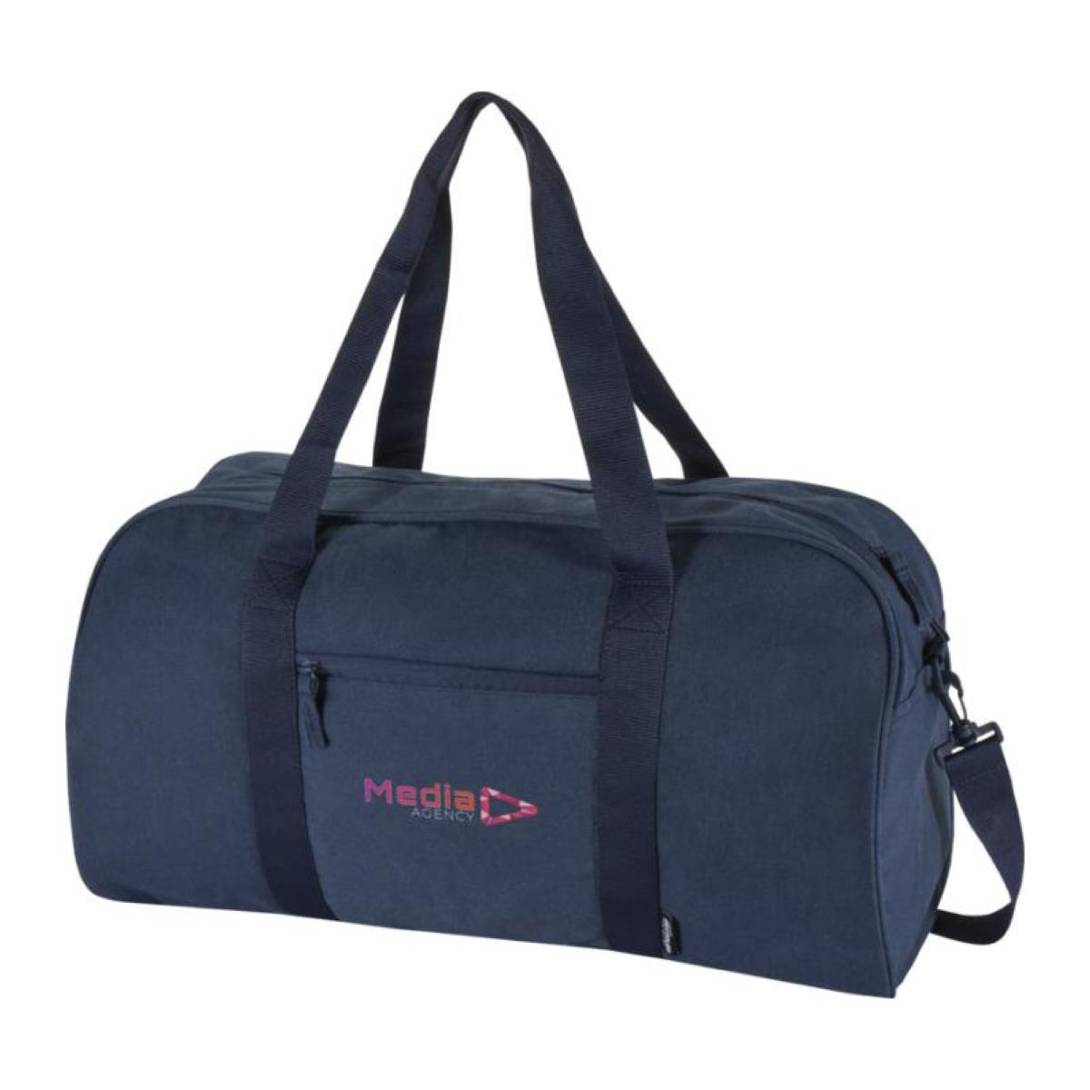 Sac de voyage en toile recyclée hydrofuge certifiée GRS. Durable et polyvalent. Compartiment principal spacieux, poche frontale à fermeture éclair, poignées souples et bretelles réglables amovibles. Parfait pour les séances de sport, les voyages le week-end ou une utilisation quotidienne.