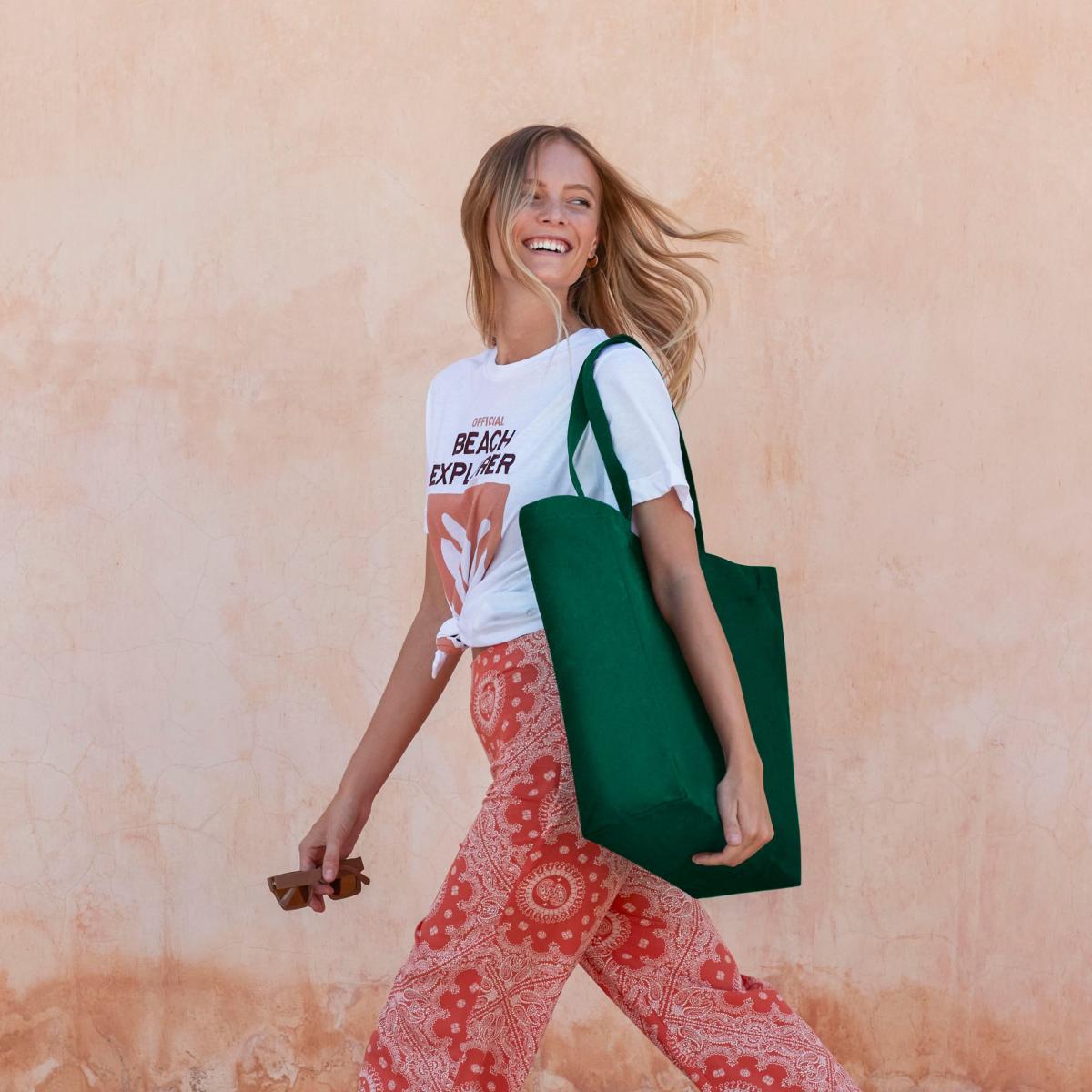 Sac shopping en coton issu du commerce équitable. Sac certifié Fairtrade. Longueur des anses 58cm. Surface d'impression : 35x29cm.