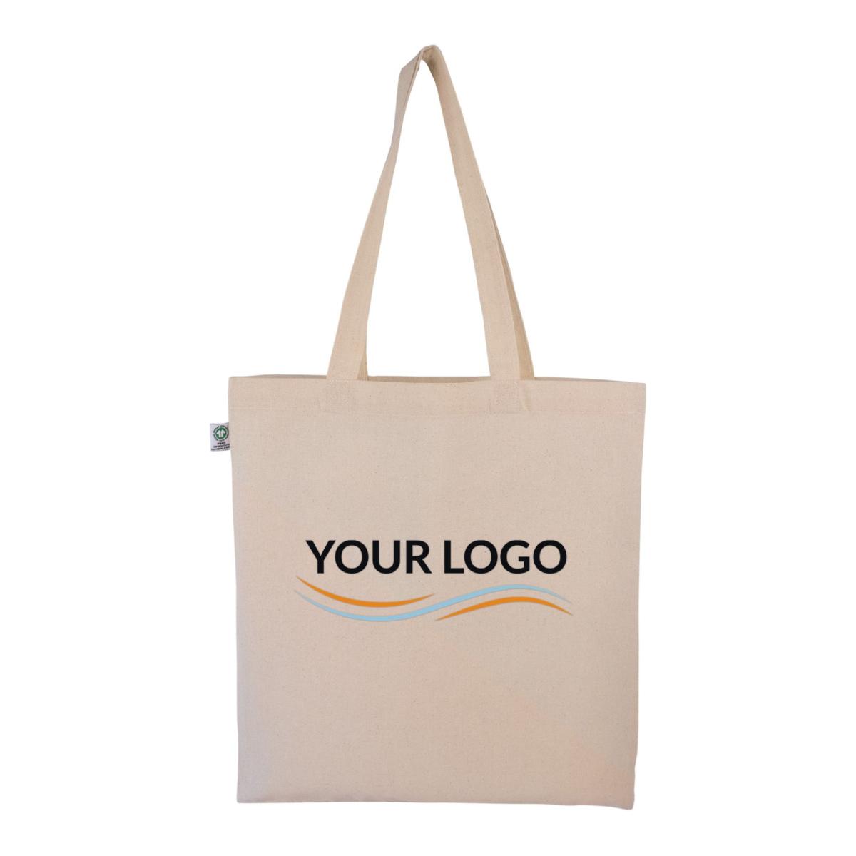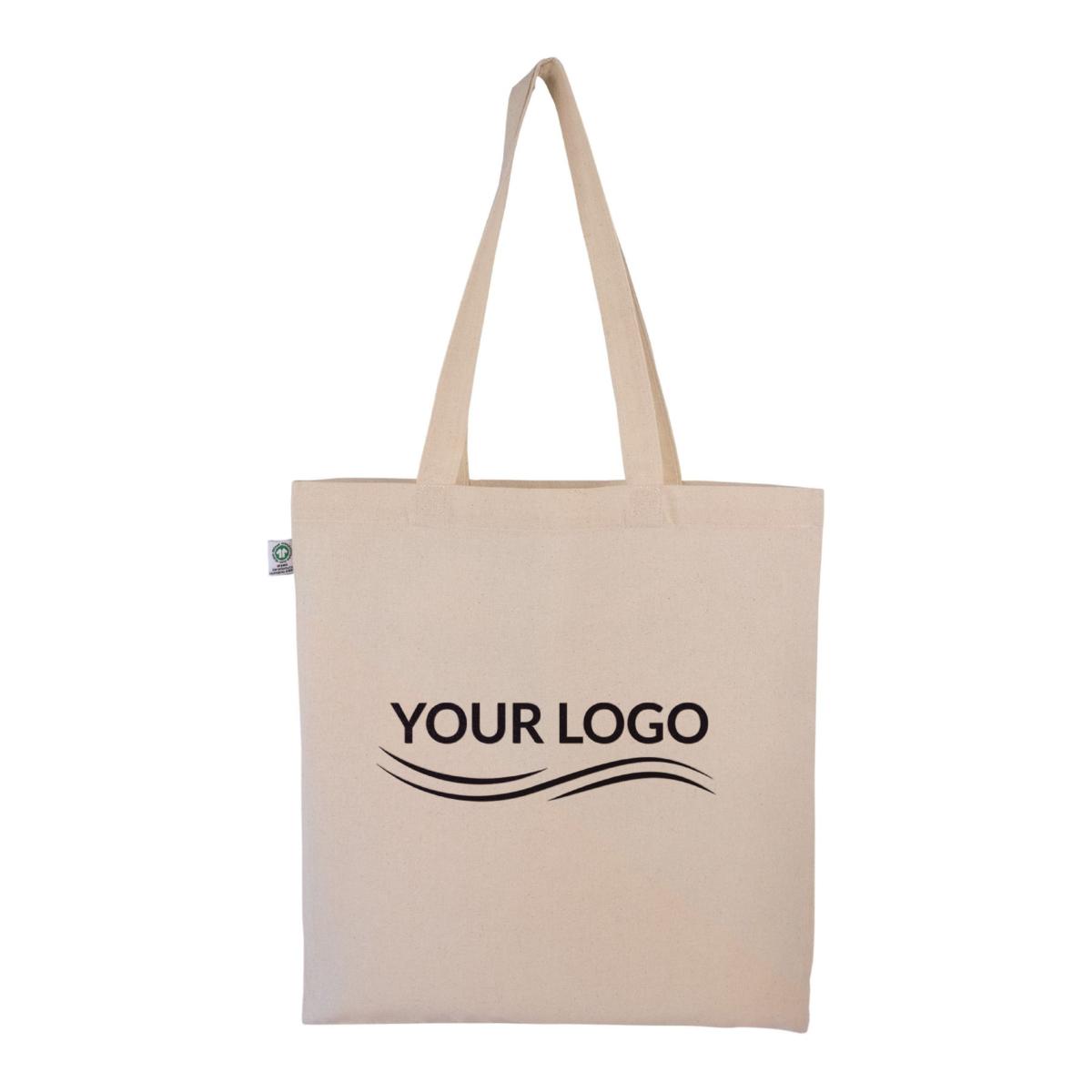 Sac en coton biologique. Certifié OCS et OEKO-TEX 100. Dimensions : 38 x 42 cm. Anses en coton biologique : 2.5 x 60 cm. Marquage réalisé au Portugal.