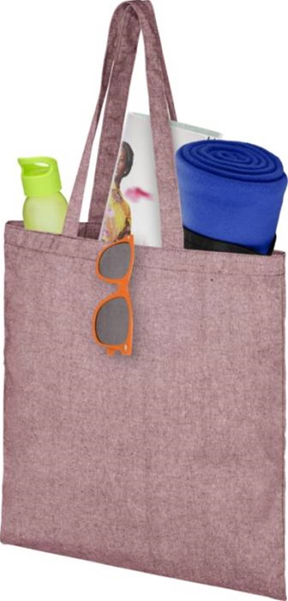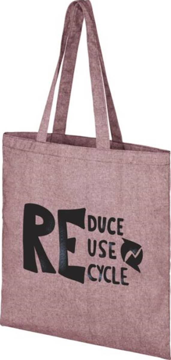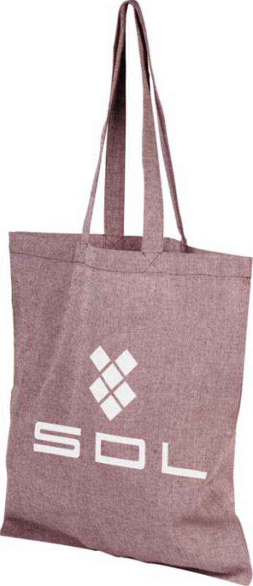 Sac shopping en mélange de coton et polyester recyclé 150 g/m² avec une longueur de poignée tombante de 31 cm. Le coton recyclé est fabriqué à partir de déchets de pré-consommation générés par les usines textiles pendant le processus de coupe. Des couleurssimilaires sont mélangées entre elles, ce qui signifie qu'aucune teinture supplémentaire n'est nécessaire. Ce sac se plie facilement pour tenir dans un petit espace.