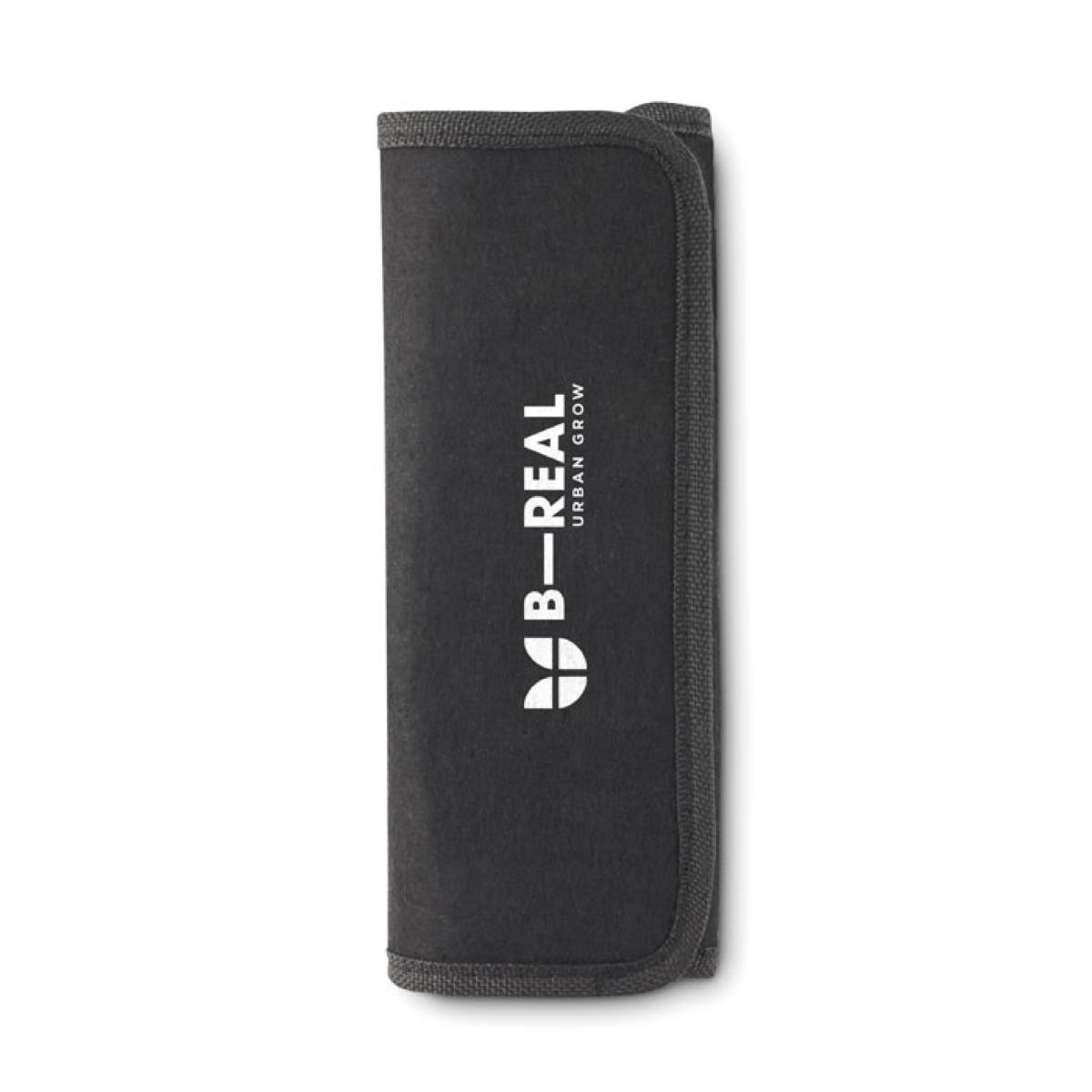 Set de trois outils de jardinage. Griffe, pelle et transplantoir. Présentés dans une pochette en feutre RPET.