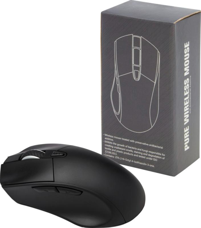 Souris optique sans fil antibactérienne au design ergonomique, avec un bouton DPI (800 / 1200 / 1600) pour régler la précision du pointeur. Additif antibactérien très efficace pour inhiber la croissance des bactéries et des champignons. Testée selon la norme ISO 22196:2011. Alimentée par 2 piles AA (non incluses). Livré dans un coffret cadeau de qualité. Plastique ABS.