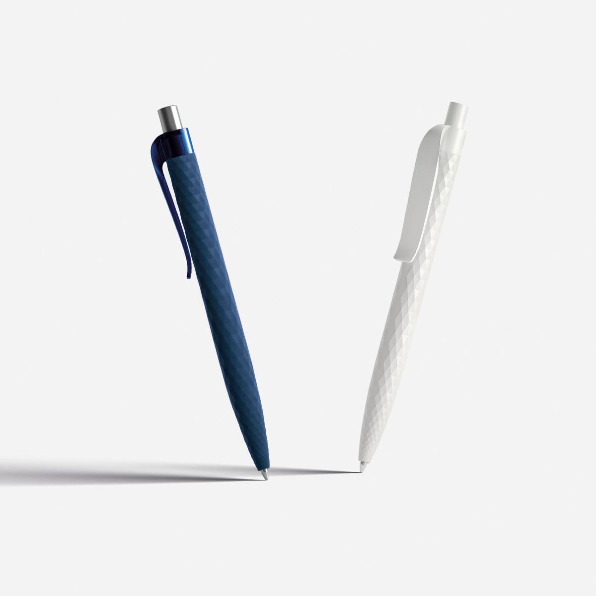 Stylo à bille de la marque Prodir, en plastique (ABS) recyclé (100% pour les stylos en noir ou blanc et 50% pour les autres couleurs). Finition mate. Design élégant et confortable. Structure en filigrane faisant penser à un diamant taillé.