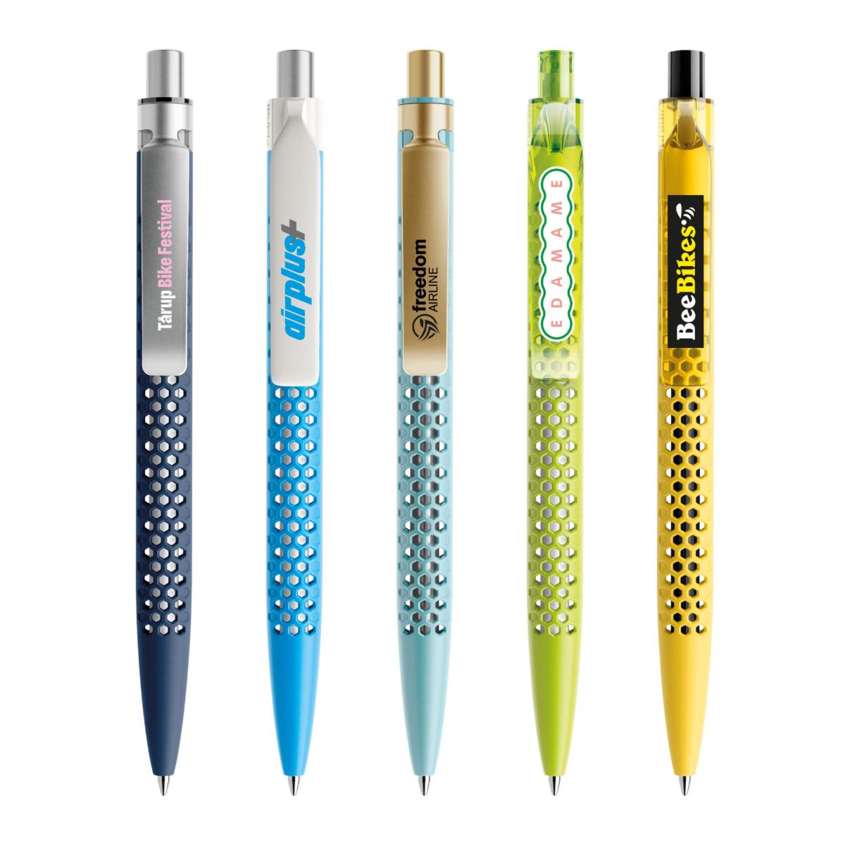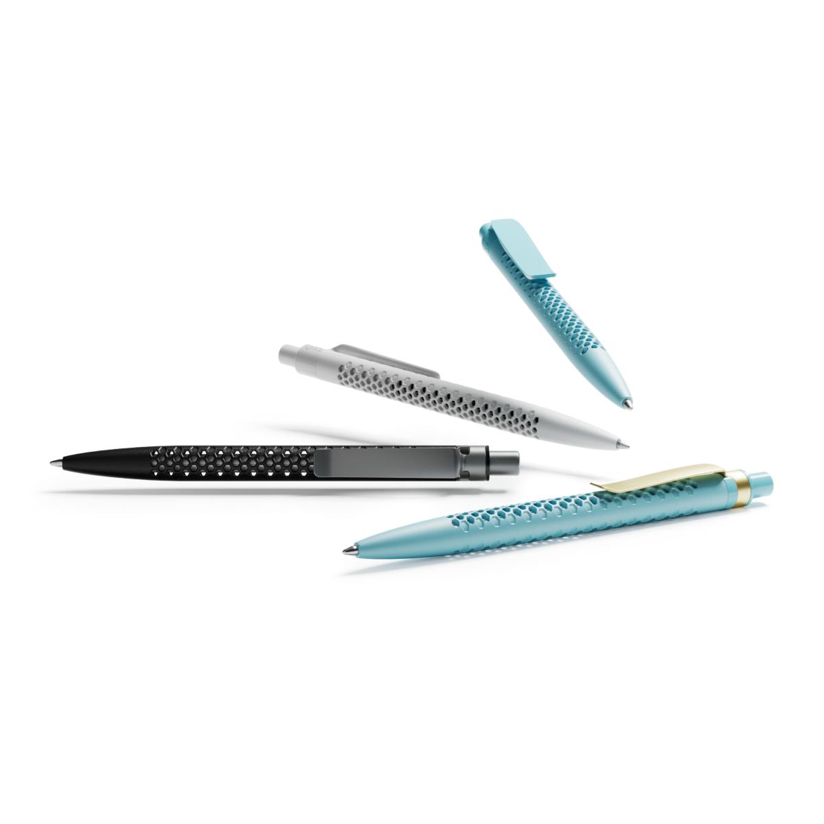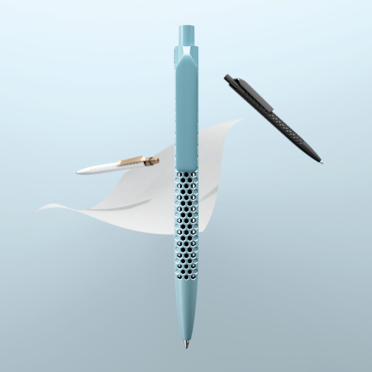 Stylo à bille léger de la marque Prodir, à bouton poussoir en plastique (ABS) 100 % recyclé en noir et en blanc, 50% de recyclat dans les autres couleurs. Design économe en matériaux avec 60% de plastique en moins. Finition soft-touch. Design léger et perforé.