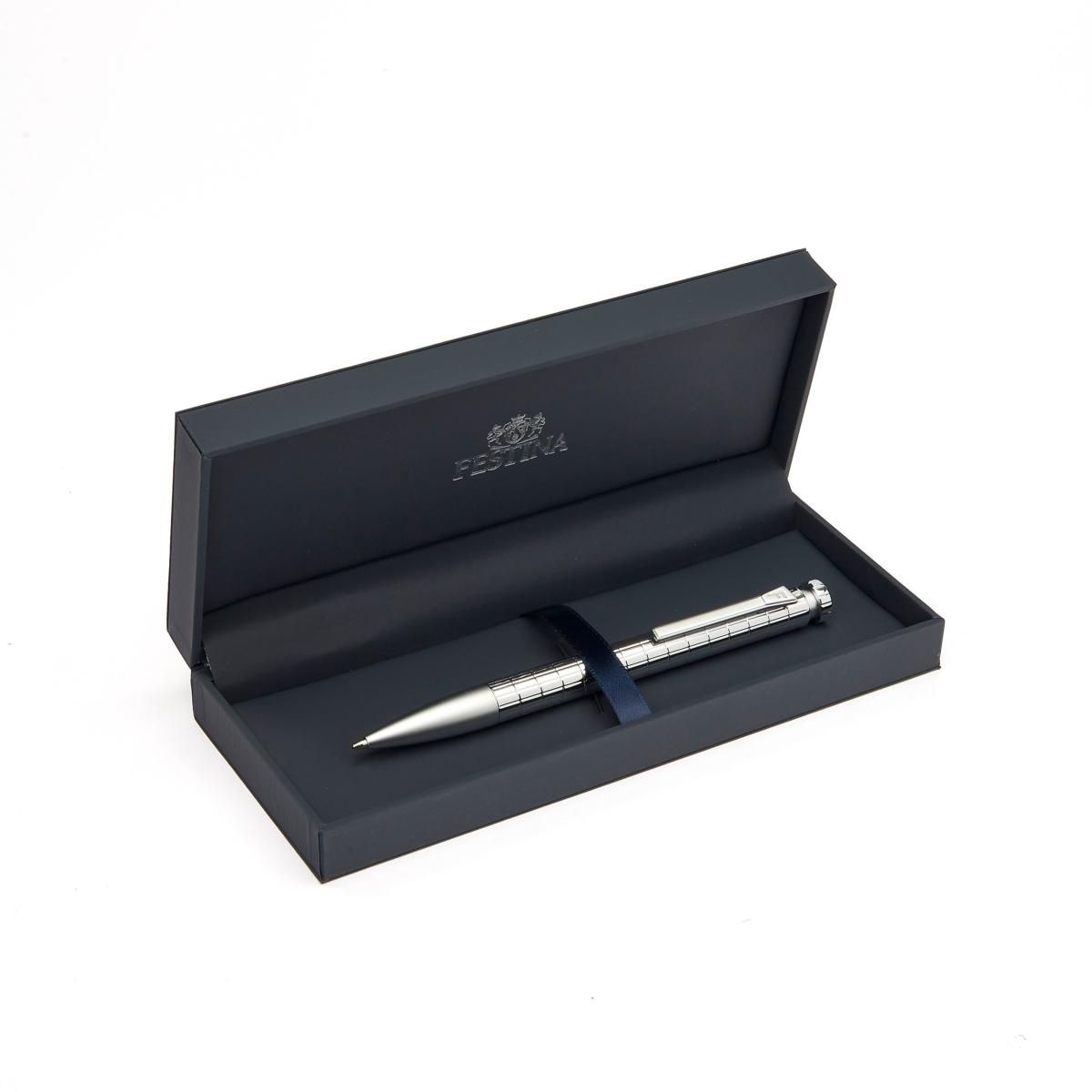 Stylo bille texturé, de la marque Festina. Silhouette épurée et élégante. Eléments raffinés, anneaux texturés et logo signature. Monochrome.