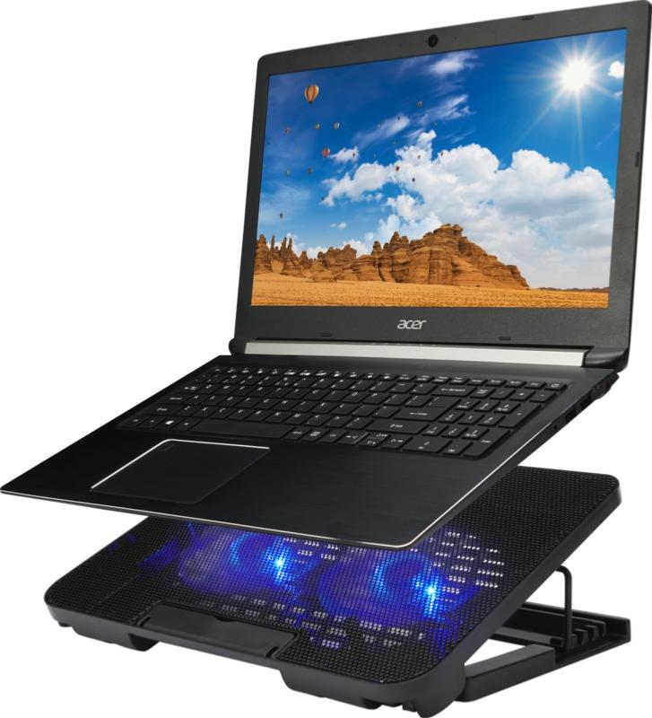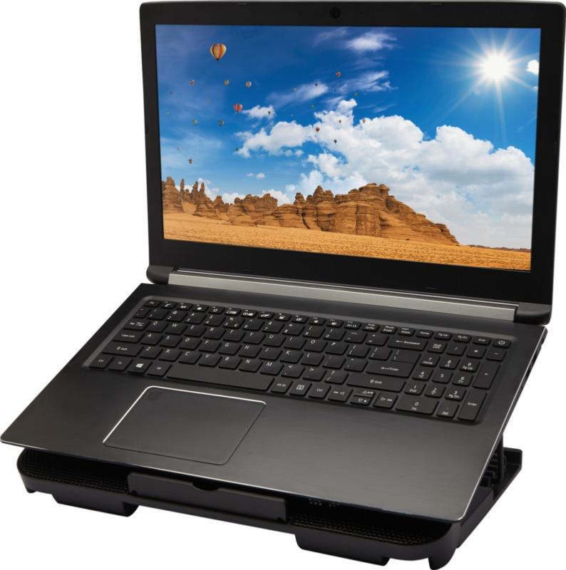Support de refroidissement pour ordinateur portable avec 4 niveaux de hauteur réglables pour jouer à des jeux ou regarder des films selon l'angle le plus confortable (10°- 23°). Deux ventilateurs silencieux fournissent un fort flux d'air pour empêcher l'ordinateur portable de surchauffer. Grande surface plane compatible avec la plupart des ordinateurs portables du marché et pouvant supporter un poids maximal de 20 kg. Le support peut être entièrement replié pour un transport facile. Intégré avec 2 ports USB qui peuvent être utilisés comme concentrateur USB avec prise en charge USB 2.0 jusqu'à 60 Mo/s de transmission. Livré dans un coffret cadeau en matériau durable. Plastique ABS