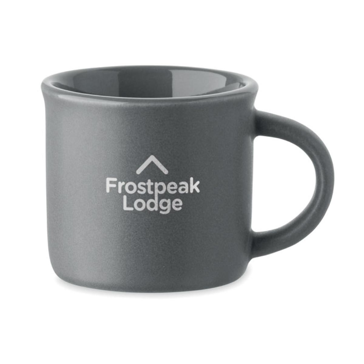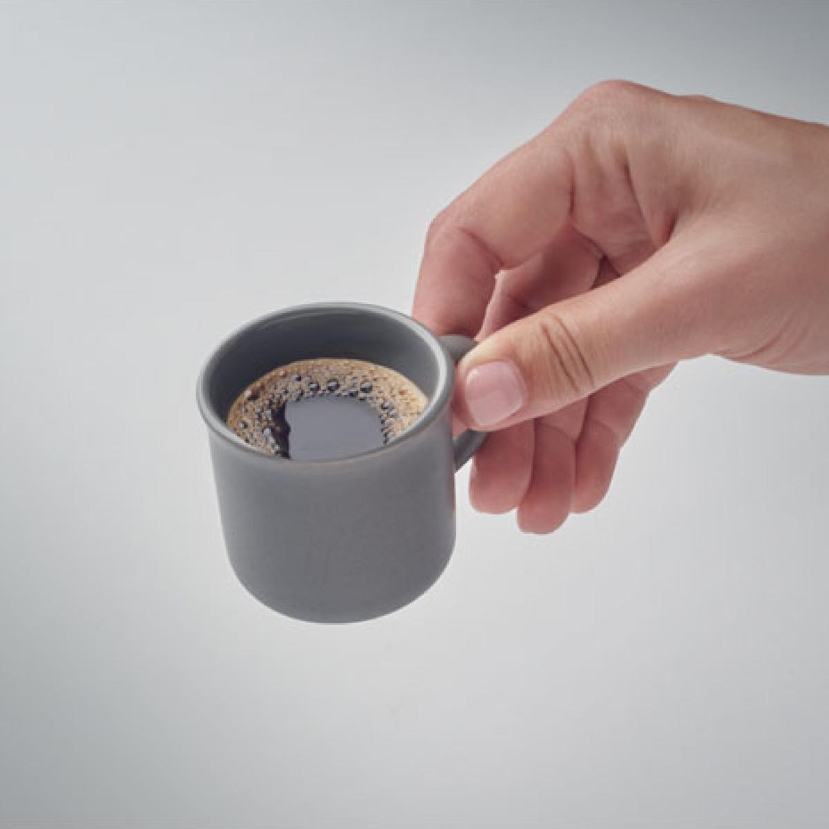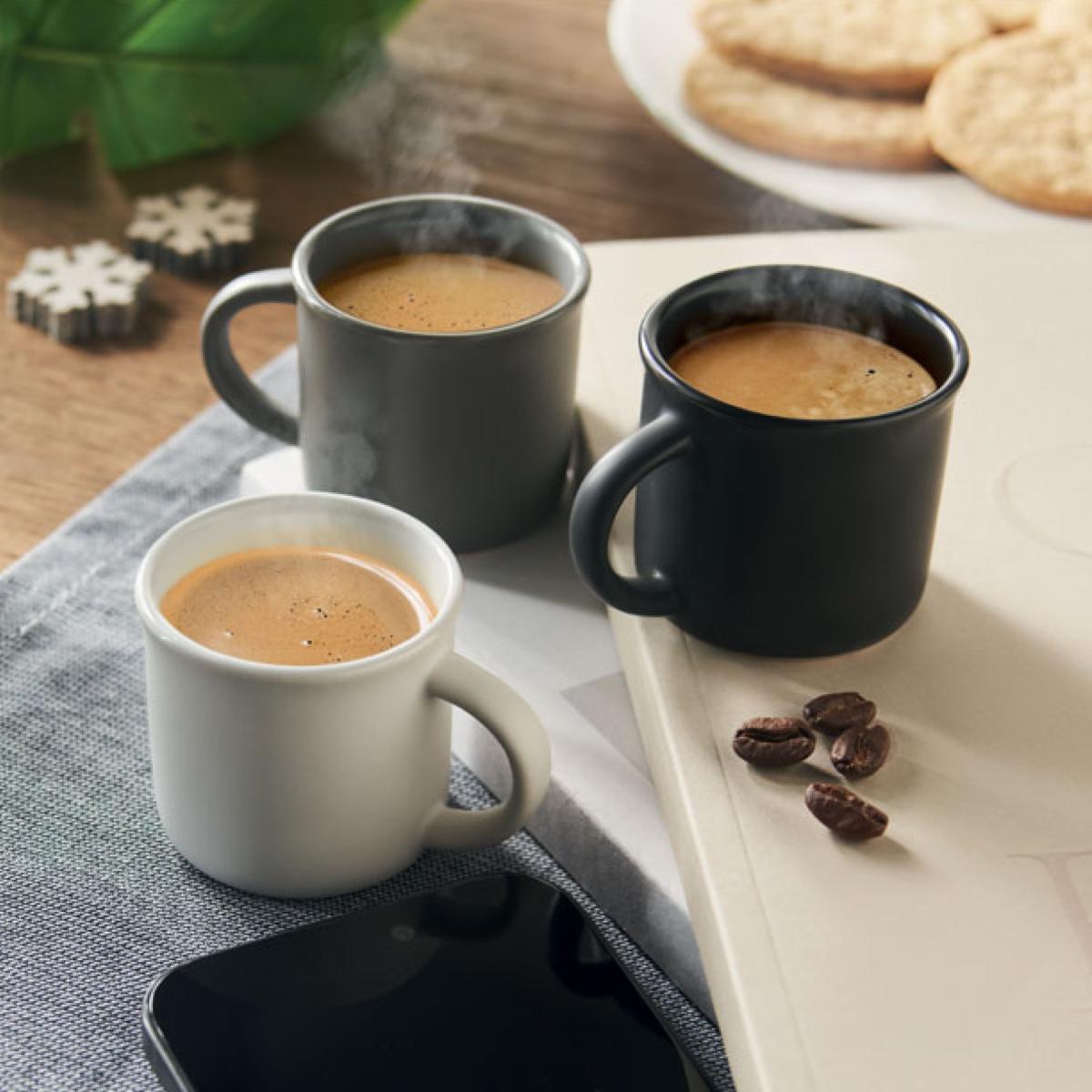 Tasse à expresso en céramique. Emballage individuel dans une boîte en carton blanc.