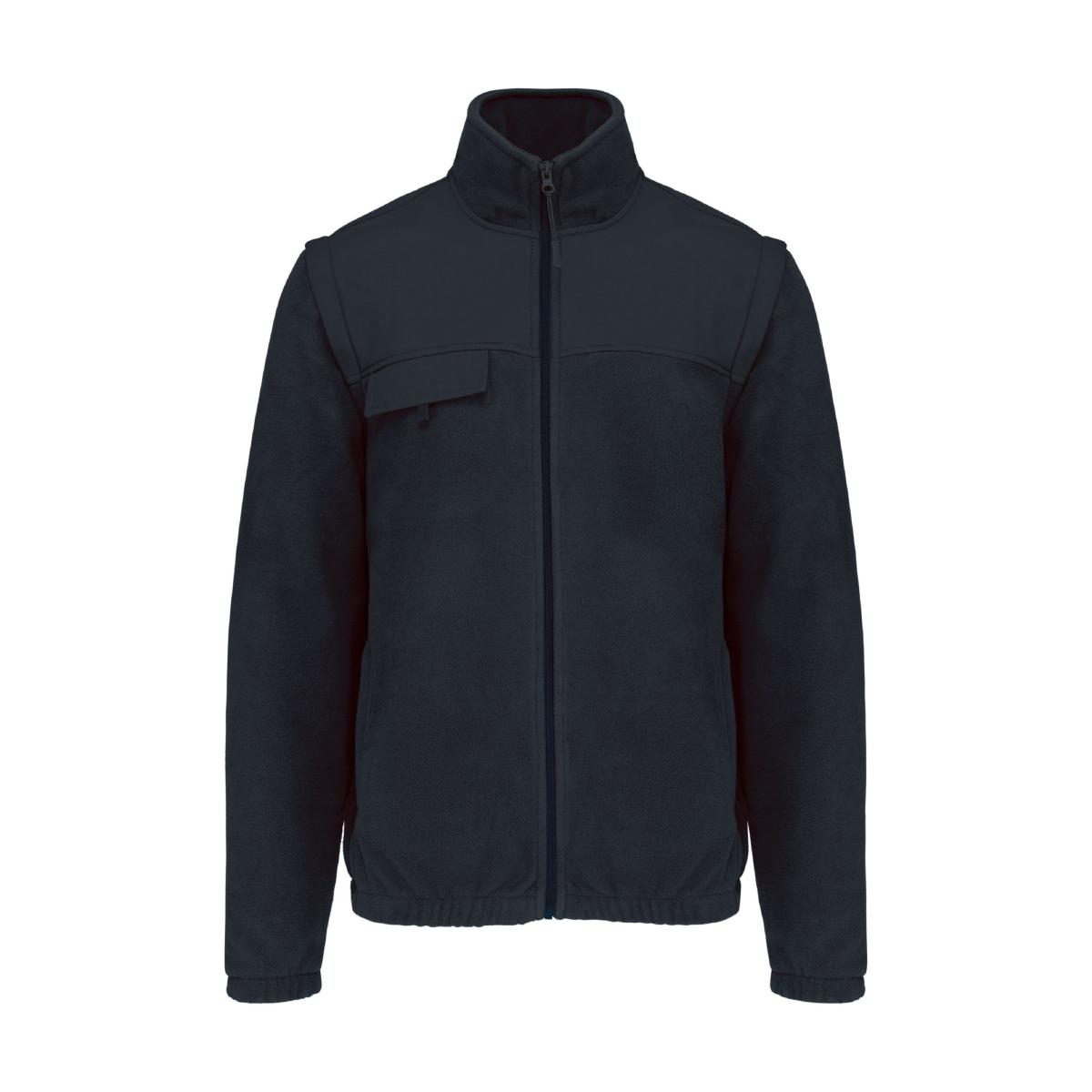 Veste polaire à manches amovibles pour homme. Veste en polaire doublée et renforcée, parfaite pour un usage professionnel. Manches amovibles doublées polyester pour plus de confort et de chaleur. Deux poches avant zippées et une poche poitrine avec rabat et bande auto-agrippante. Larges protections ton sur ton aux épaules et avant-bras. Poignets et bas de vêtement élastiqués.